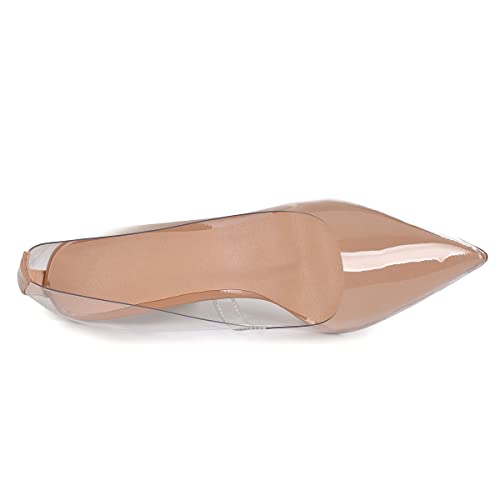 • [Item Features]: Women's pointed toe transparent high heel pumps, classic slip-on design easy slip on and off.Runs true to size, keep you comfy in all days. Available in black and nude 2 color choose.