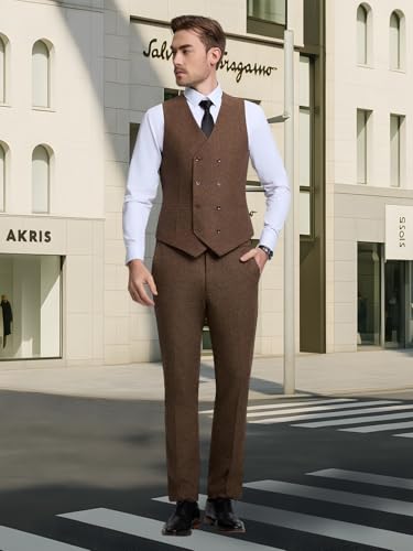 More information about Mens Tweed Herringbone Suit 2 Piece Slim Fit Tuxedos Suit for Men Winter Vest Pants for Wedding Groom