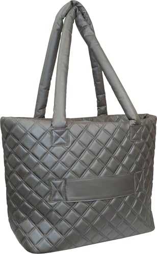 Joan & David 21 Inch Diamond Quilted Puffer Nylon Travel Workbook Tote (Dark Taupe) 1