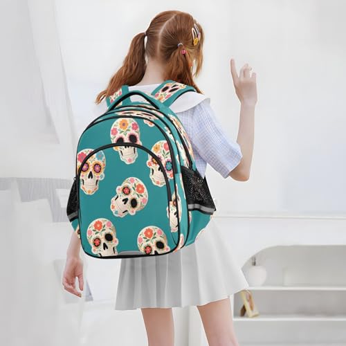 More information about Skull Blue Background Pattern Backpack For Girls Kindergarten Elementary Bookbag Lightweight Childrens School Bag,Medium