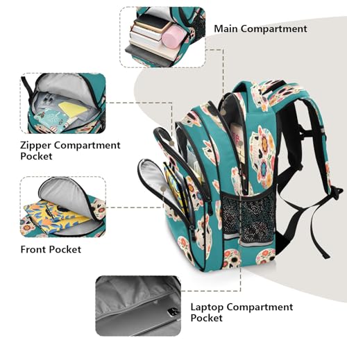 Skull Blue Background Pattern Backpack For Girls Kindergarten Elementary Bookbag Lightweight Childrens School Bag,Medium 7
