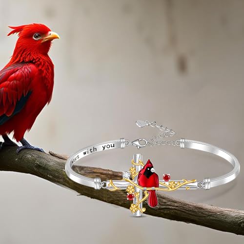 HOT ! Cardinal Bracelet Red Cardinal Gifts for Women 925 Sterling Silver Cross Cardinal Bangle Bracelet Birds Charm Memorial Jewelry