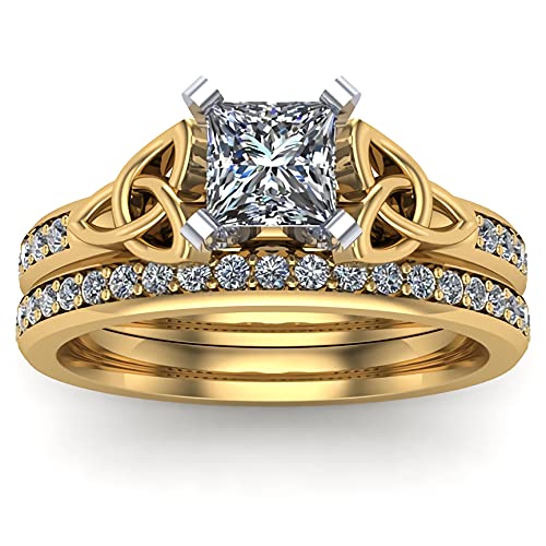 Engagement Ring for Women Bridal Ring Set 1-2/5 ct. tw. Princess Cut Moissanite or Lab Grown Diamond Engagement Ring Set 10K 14k 18K Gold Celtic Wedding Ring Set for Her Anniversary Promise Rings 2