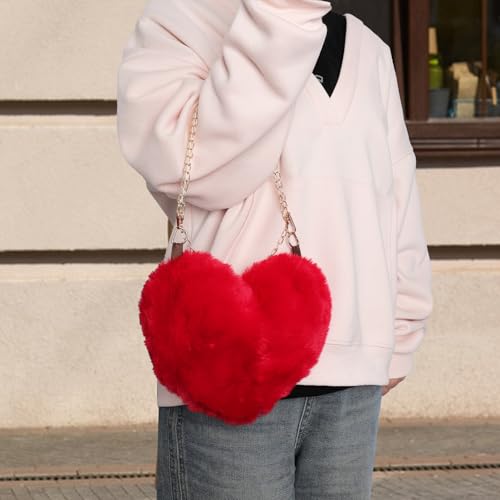 • Good Material: Our heart shaped fluffy bag is designed with plush, soft and cozy, with the main color of red, giving warmth and vitality. It is soft and cozy to the touch, which is very suitable for the winter season, and also adds an added dimension to the bag. This heart shape also fits in well with the festive atmosphere of Valentine's Day. The fluff of our love heart bag will have a little fur loss phenomenon, this is normal, you can gently pat and shake off the floating fur