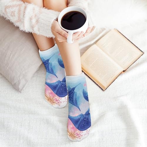 HOT ! 5 Pairs of Cotton Ankle Socks for Women Men Sea Animals Stingrays Low Cut Socks for Running Hiking No Show Athletic Sock