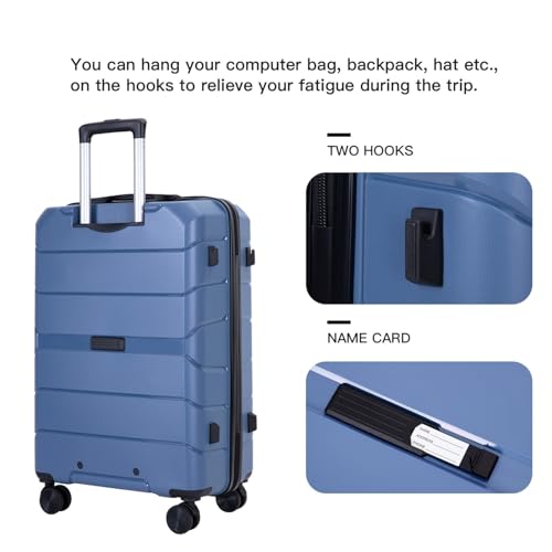 Lightweight Hardshell Luggage Set with Wheels - 3-Piece Blue Suitcase Set (20", 24", 28") for Travel 5