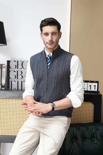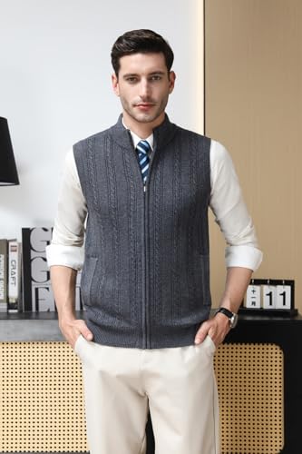 Men’s 100% Wool Sleeveless Cardigans Full Zip Up Knitted Sweater Vest Casual Outerwear 7