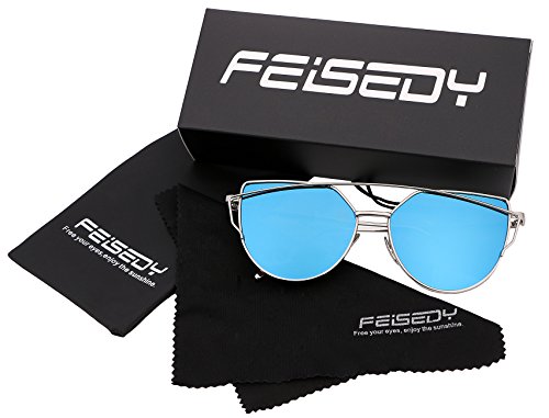 More information about FEISEDY Cat Eye Fashion Metal Frame Mirrored Flat Lenses Women Sunglasses B2206