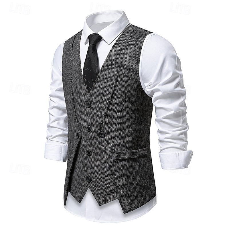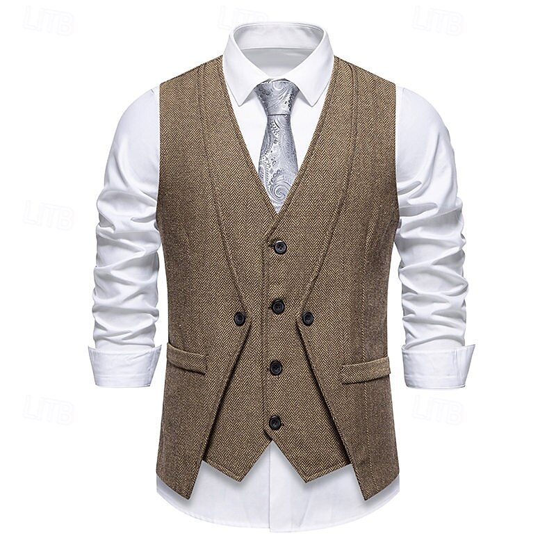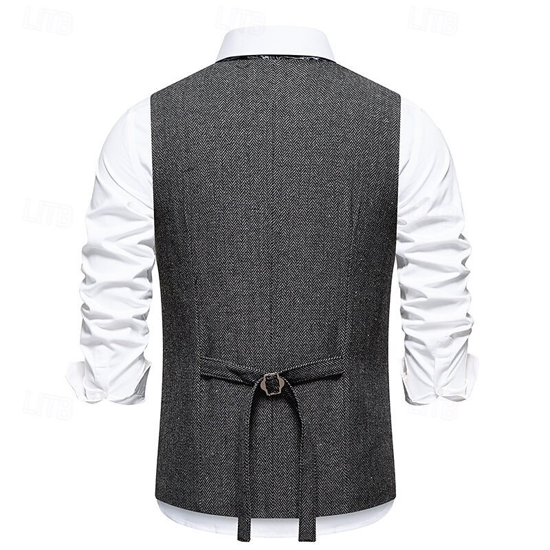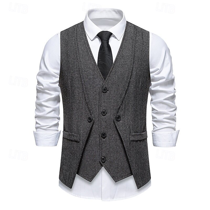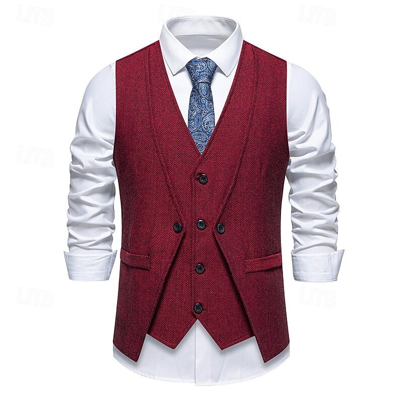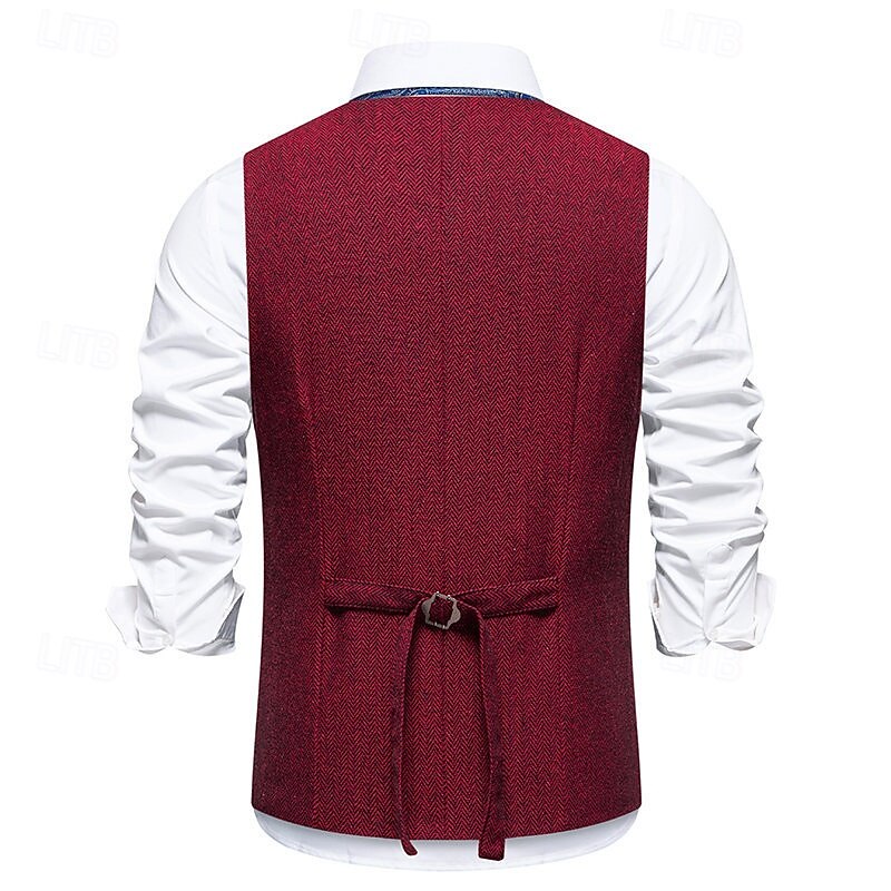 More information about Men's Vest Waistcoat Gilet Vacation Party Business Fashion Casual Spring Fall Pocket 2 in 1 Buttons Polyester Comfortable Plain Single Breasted One-button V Neck Regular Fit Wine Navy Blue Dark Gray