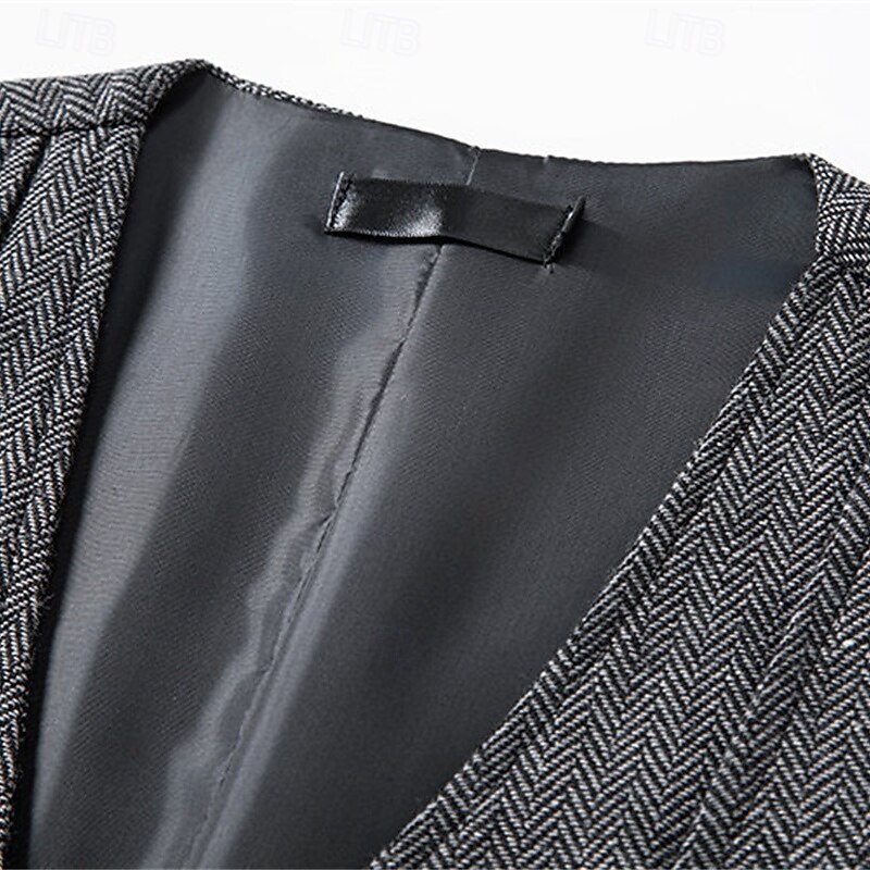 Men's Vest Waistcoat Gilet Vacation Party Business Fashion Casual Spring Fall Pocket 2 in 1 Buttons Polyester Comfortable Plain Single Breasted One-button V Neck Regular Fit Wine Navy Blue Dark Gray 3