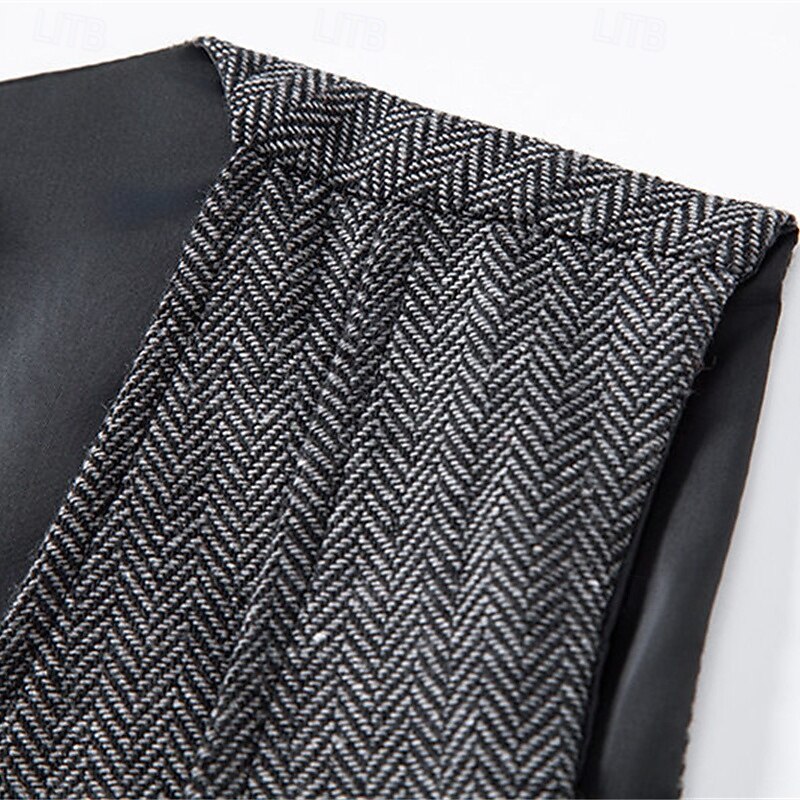 Men's Vest Waistcoat Gilet Vacation Party Business Fashion Casual Spring Fall Pocket 2 in 1 Buttons Polyester Comfortable Plain Single Breasted One-button V Neck Regular Fit Wine Navy Blue Dark Gray 27
