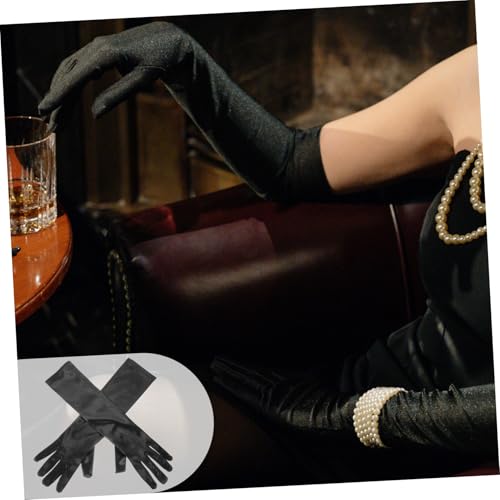 PartyKindom 2pairs Black Satin Stain Gloves Long Women's Formal Gloves for Wedding Banquet Tea Party Elegant Ladies 6