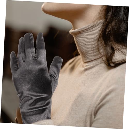 PartyKindom 2pairs Black Satin Stain Gloves Long Women's Formal Gloves for Wedding Banquet Tea Party Elegant Ladies 5