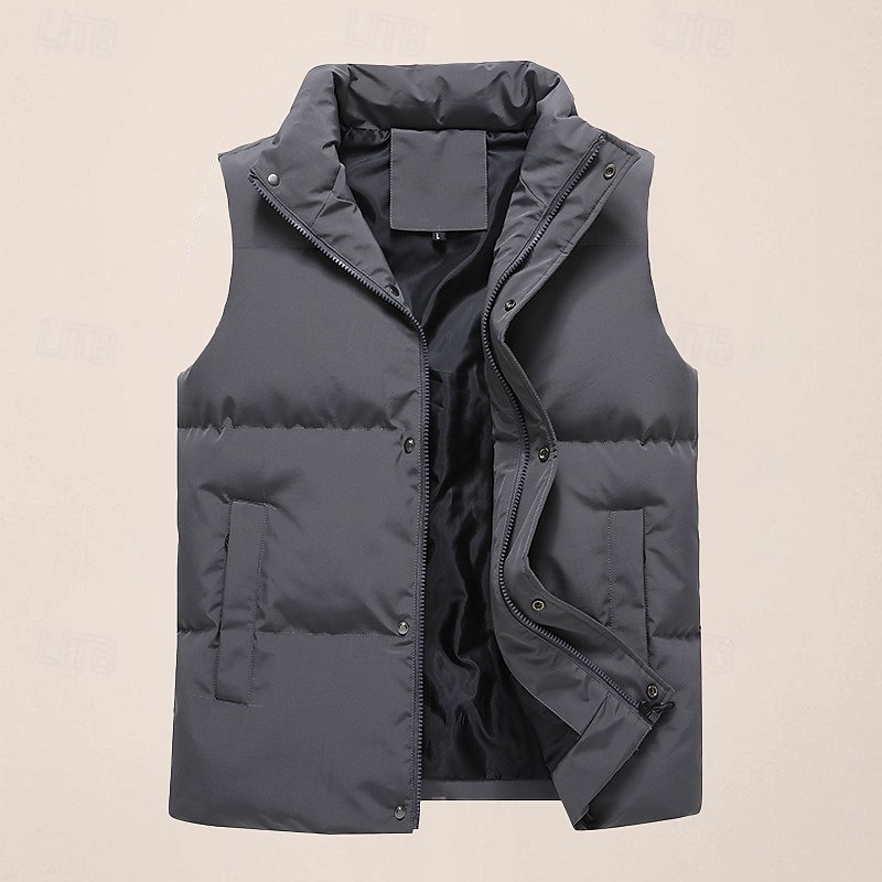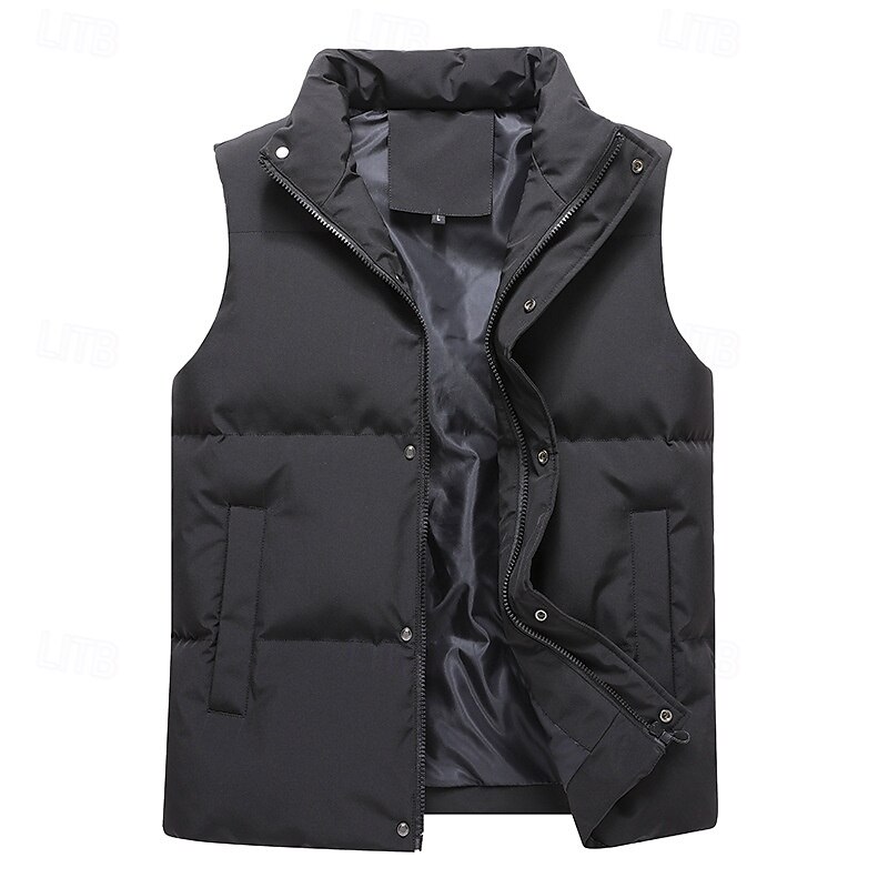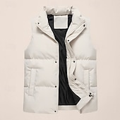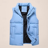 More information about Men's Puffer Vest Daily Casual Fall & Winter Pocket Polyester Comfortable Plain Zipper Stand Collar Black Pink Blue Khaki Vest