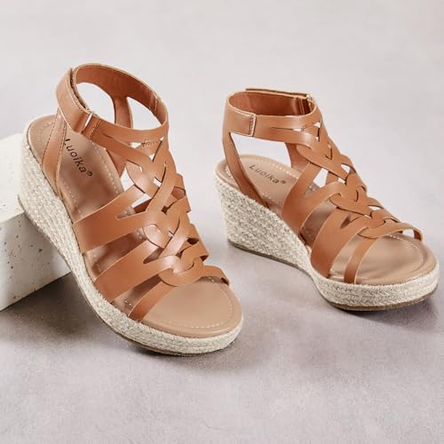 Luoika Women's Wide Width Wedge Sandals, Espadrille Wedge Pump Heel Platform Ankle Strap Open Toe Women's Sandal Concise Casual Summer Shoes. 1