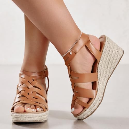 HOT ! Luoika Women's Wide Width Wedge Sandals, Espadrille Wedge Pump Heel Platform Ankle Strap Open Toe Women's Sandal Concise Casual Summer Shoes.