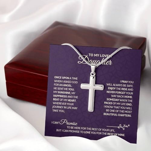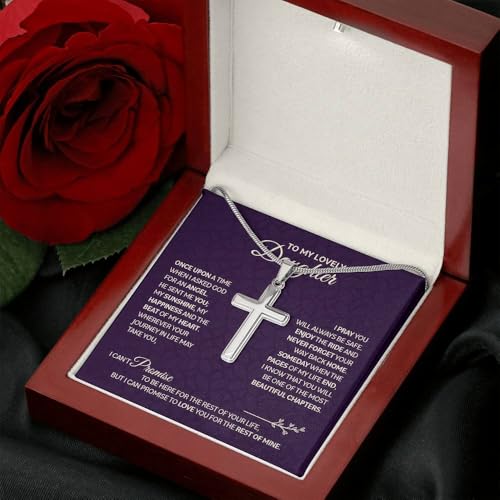 • ELEGANT GIFT BOX INCLUDED - The to my daughter necklace arrives in a beautiful gift box, eliminating the need for wrapping paper and making it ready to present at any special moment. It's an ideal gift that combines elegance and convenience, reflecting the thoughtful consideration behind your choice.