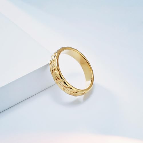 Tulip Flowers Wedding Promise Band Dome Ring for Women Men,14k Gold Plated Titanium and Stainless Steel Comfort Fit Band Ring 5