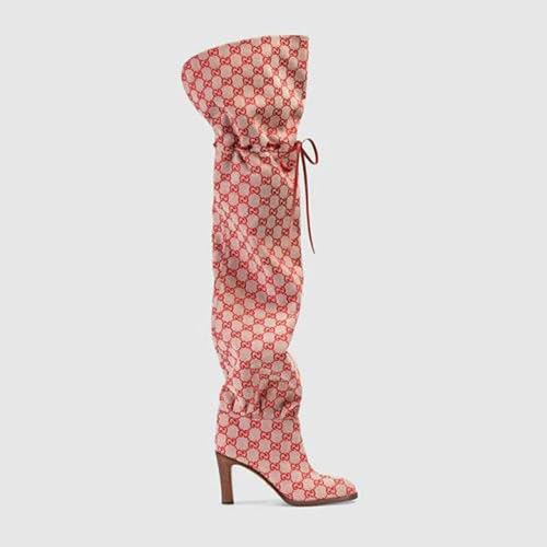 Over The Knee Boots Women,All-Match Round Head Slim High Heel Printing Fashion Long Boots Strappy Lace Up Party Casual,Pink-36 5