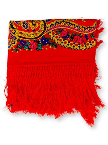 HOT ! Traditional Portuguese Viana Scarf, Floral Pattern, Red, Blue and Black