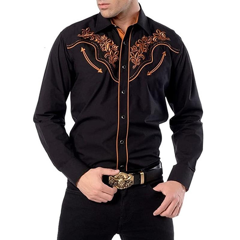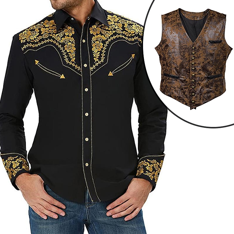 More information about Set with West Cowboy Shirt PU Waistcoat Vest Men's 2 PCS Outfits Long Sleeve Casual Button Down Shirt Retro Vintage Party Carnival Cosplay Costume