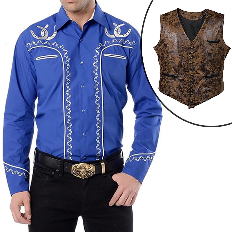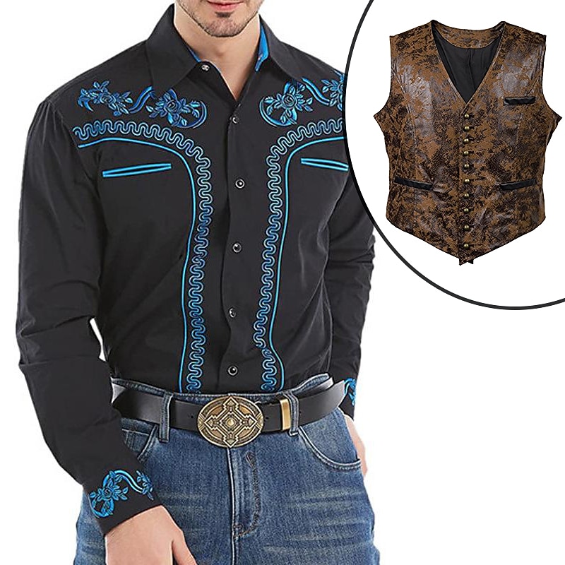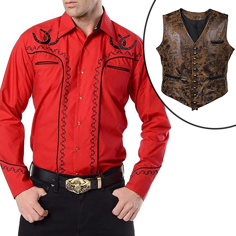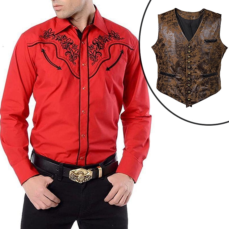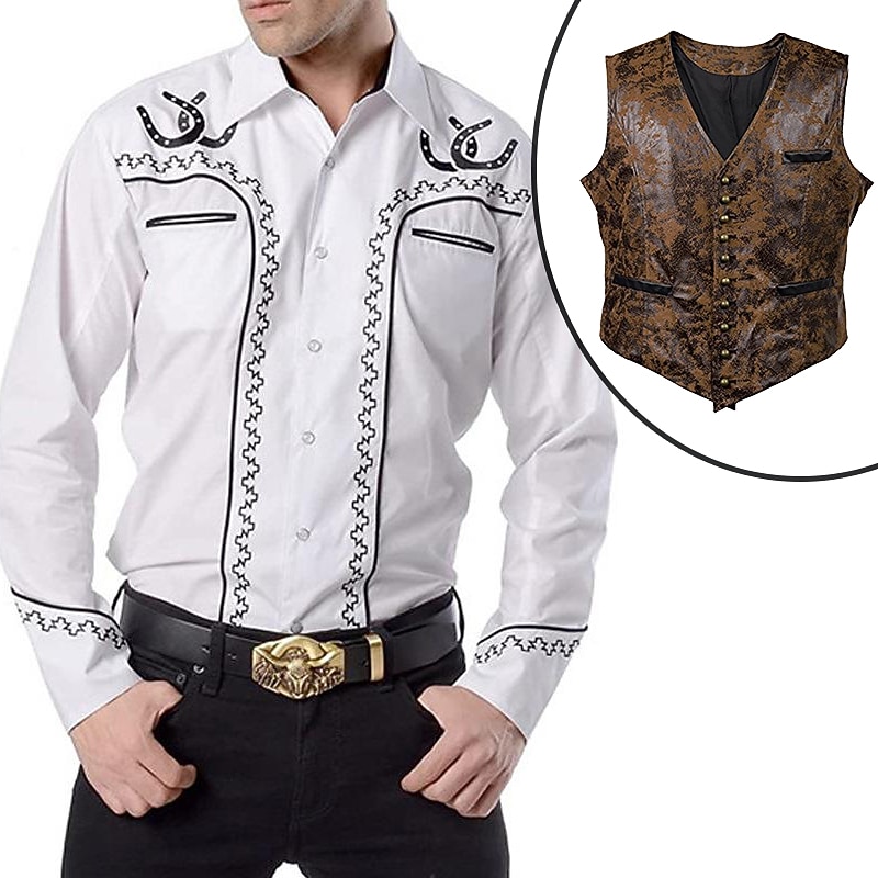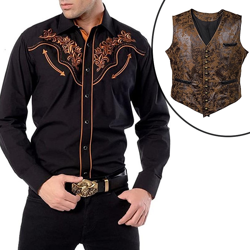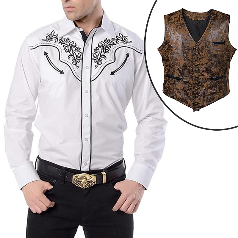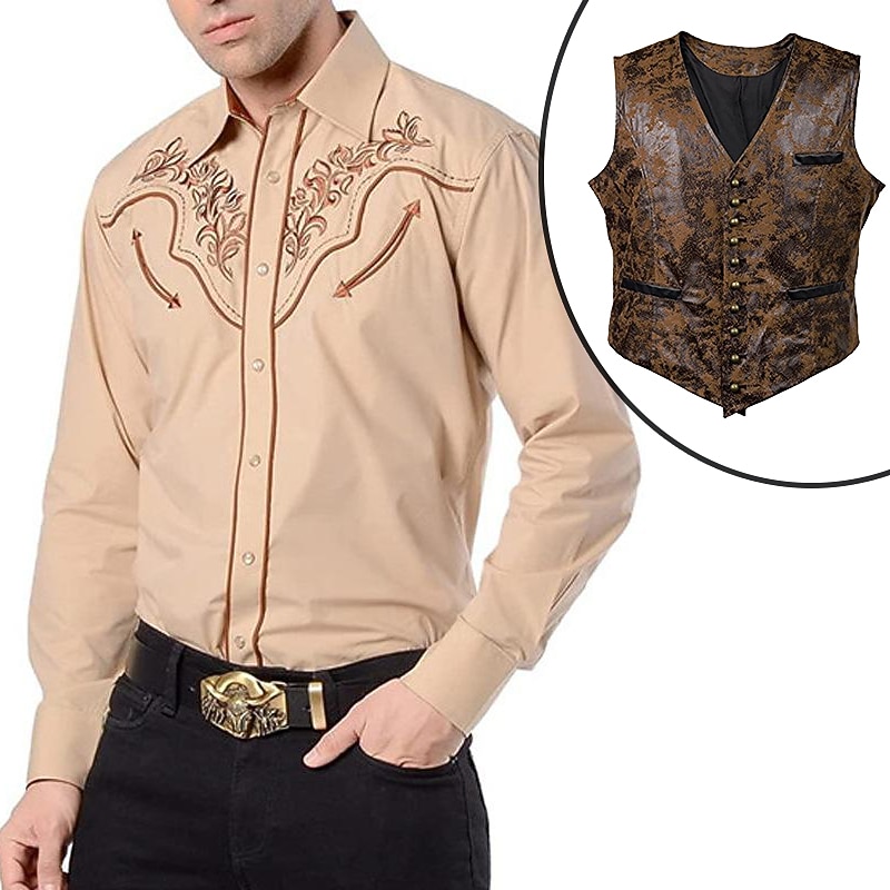 $57.99 - Set with West Cowboy Shirt PU Waistcoat Vest Men's 2 PCS Outfits Long Sleeve Casual Button Down Shirt Retro Vintage Party Carnival Cosplay Costume 2025. Shop for cheap Wild West online? Buy at lightinthebox.com on sale today!