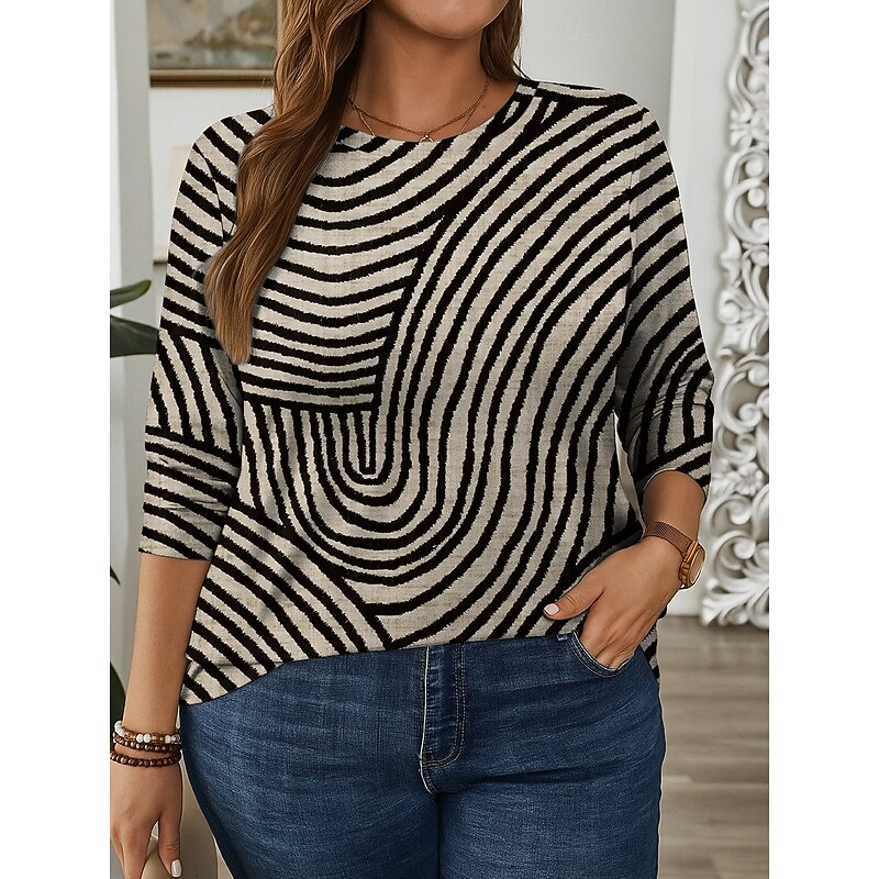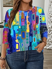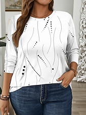 More information about Women's Plus Size Tops T Shirt Graphic Geometry Print Long Sleeve Crew Neck Casual Daily Polyester Fall Winter White Blue
