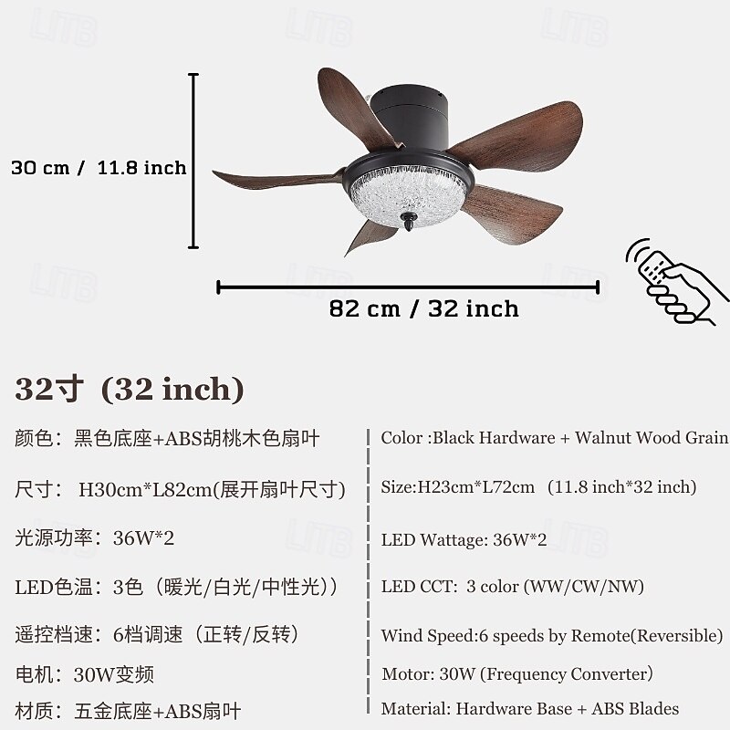 HOT ! Modern 3-blade LED ceiling fan light Wooden ABS bladeless DC motor frequency conversion iron remote control 110V-220V