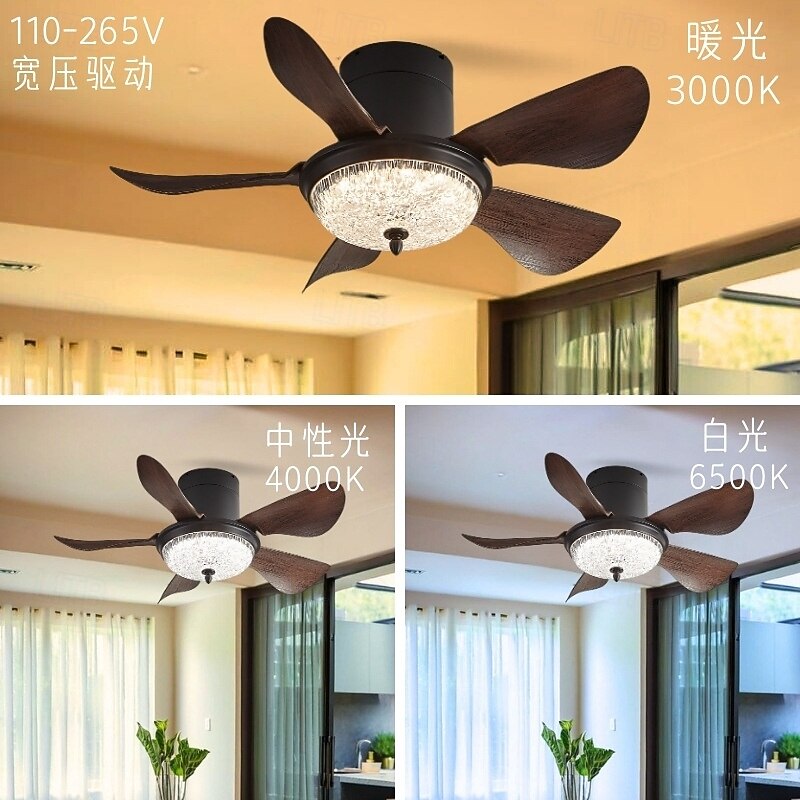 Modern 3-blade LED ceiling fan light Wooden ABS bladeless DC motor frequency conversion iron remote control 110V-220V 5