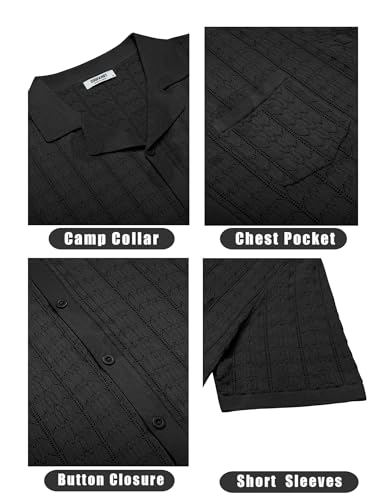 COOFANDY Men's Knit Button Down Shirt Short Sleeve Vintage Polo Shirts Summer Casual Beach Tops 1