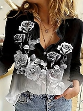More information about Women's Shirt Button Down Tunic Shirt Collar Long Sleeve Floral Graphic Elegant Vintage Tropical V Neck Regular Tops Work Daily Holiday Print Black Spring Fall