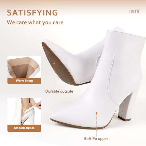 IDIFU Women's Fashion Ankle Boots Comfy Pointed Toe High Heels Side Zipper Booties 4