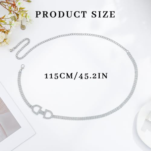 HOT ! Abien Rhinestone Belts for Women Silver Rhinestone Chain Belt Sparkle Thin Belt for Formal Dresses