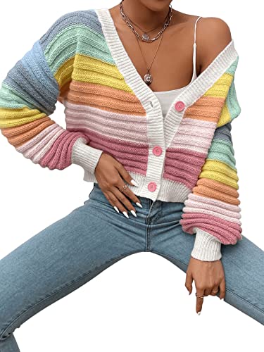 More information about SweatyRocks Women's Color Block V Neck Button Front Knit Cardigan Sweater Outerwear