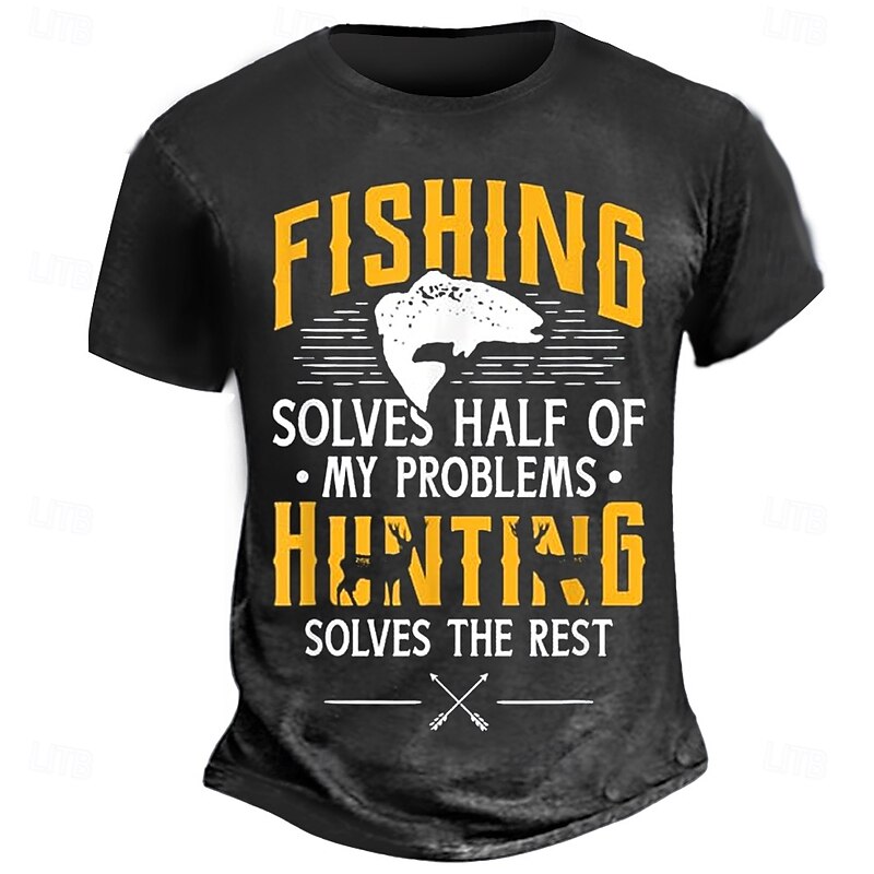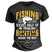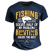 HOT ! Men's Graphic Short Sleeve T-Shirt: Fishing Solves Half My Problems, Hunting Solves The Rest - Funny Outdoor Hobby