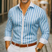 More information about Men's Shirt Satin Shirt Striped Shirt Casual Shirt Button Up Shirt Striped Wedding Vacation Blue Long Sleeve Collar Spring & Fall Clothing Apparel