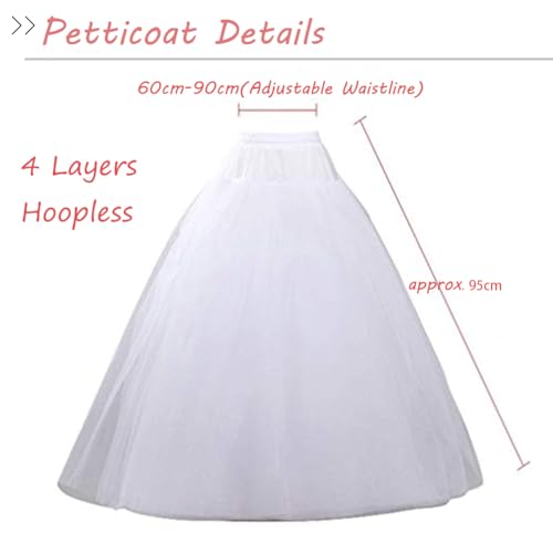 More information about Women's White Floor Length A-line Hoopless Petticoat Crinoline 4 Layers Underskirt Slips for Wedding Dress