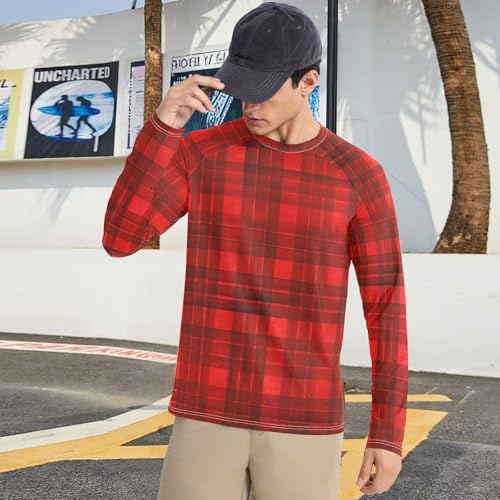 Stripe Plaid Men's Swim Shirts UPF 50+ Comfortable Loose Mens Sun Protection Long Sleeve Beach 1