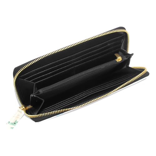 Long Wallets Leather Bifold Wallet for Women Seahorse Cartoon with Zipper Credit Card Holder Large Capacity 5