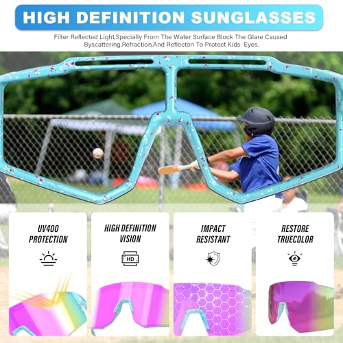 Kids Sunglasses,Youth Baseball Glasses for Boys Girls Age 6-14,Sports UV Protection Goggles 5