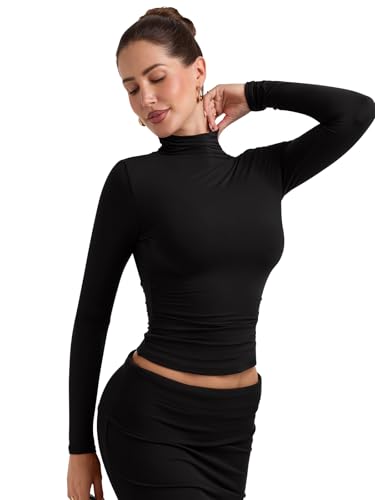 HOT ! PINKMSTYLE Womens Backless Turtleneck Long Sleeve Top Shirts Ruched Double Lined Fall Going Out Outfits 2025