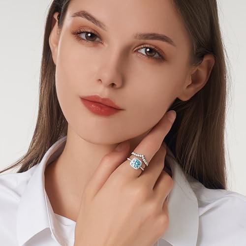 Moissanite Engagement Ring for Women, 2CT D Color VVS1 Clarity, 925 Sterling Silver with 18K White Gold Plated Moissanite Wedding Band, Ideal Gift for Women 6