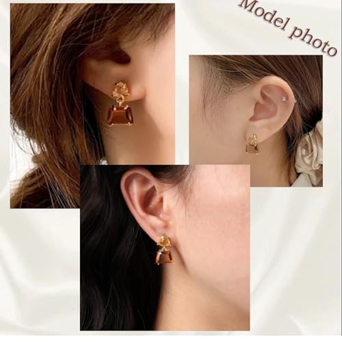 Small Brown Crystal Dangle Earrings for Women – Hypoallergenic Amber Drops, Lightweight Geometric Earrings for Sensitive Ears, Fashion Jewelry Gift for Birthday and Holidays 7