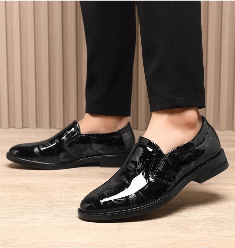 HOT ! Shoes Dress Oxford for Men Slip On Round Toe Patent Leather Floral Shoes Anti-Slip Non Slip Block Heel Slip Resistant Rubber Sole Walking