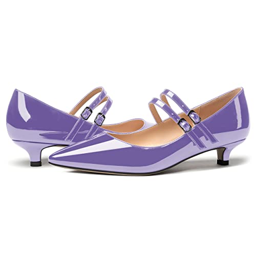 MERRORI Women's Solid Evening Slip On Adjustable Strap Dress Pointed Toe Patent Kitten Low Heel Pumps Shoes 1.5 Inch 1