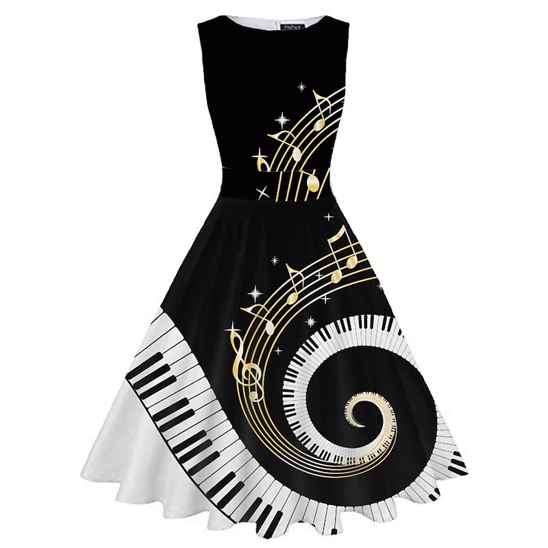 More information about Women's Retro 1950s Vintage Tea Dresses Midi Dress Daily Date Ruched Print Note Crew Neck Sleeveless Slim Summer Spring 2023 Black White S M L XL