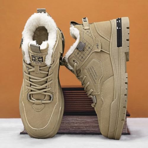 Jakcuz Mens Winter Work Boots Lace-up Fur Lined High Top Non-slip Industrial & Construction Sneakers 7
