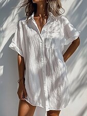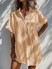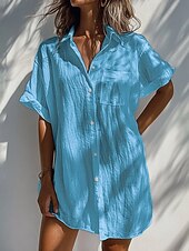 More information about Women's Shirt Blouse Plain Modern Casual Short Sleeve Shirt Collar Regular Tops Daily Going out Buttons Pocket White Apricot Light Blue Summer