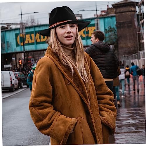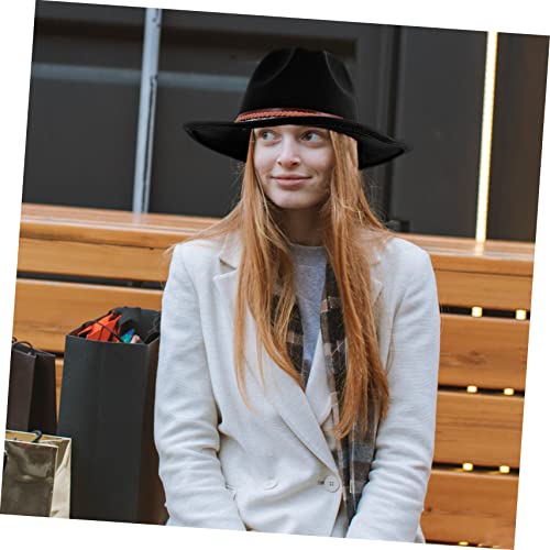 1Pc Women's Vintage Woolen Jazz Hat Stylish Autumn Fedora with Classic Flat Edge Design for Parties Giving Breathable Comfortable Black 6
