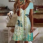 More information about Women's Knee Length Dress A Line Dress Stylish Casual Outdoor Winter Dress Vacation Regular Fit Floral Animal Butterfly Long Sleeve V Neck Black White Pink Green Summer Spring
